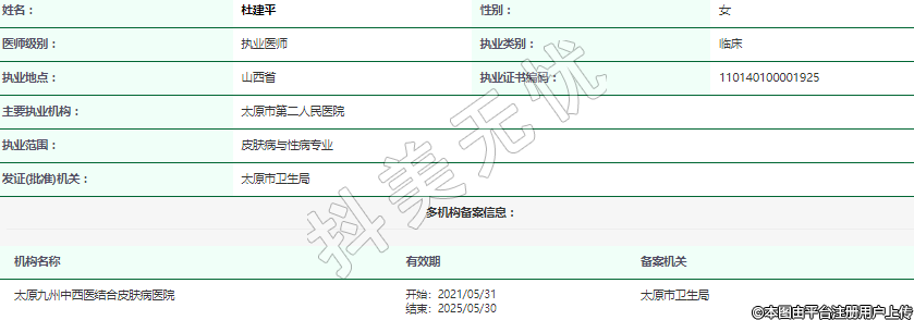 執(zhí)業(yè)范圍:皮膚病與性病專業(yè)