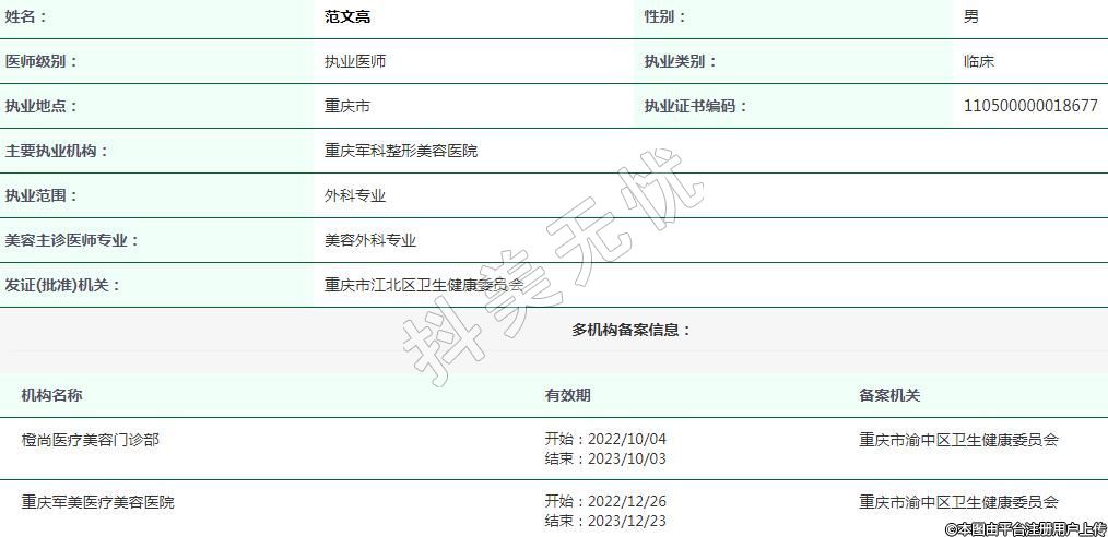 主要執(zhí)業(yè)機構:重慶軍科整形美容醫(yī)院