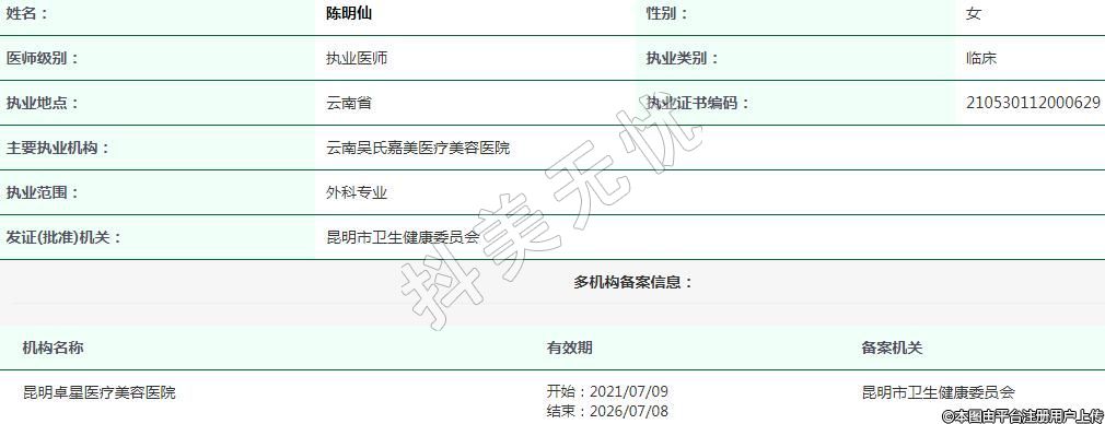 主要執(zhí)業(yè)機構(gòu):云南吳氏嘉美醫(yī)療美容醫(yī)院