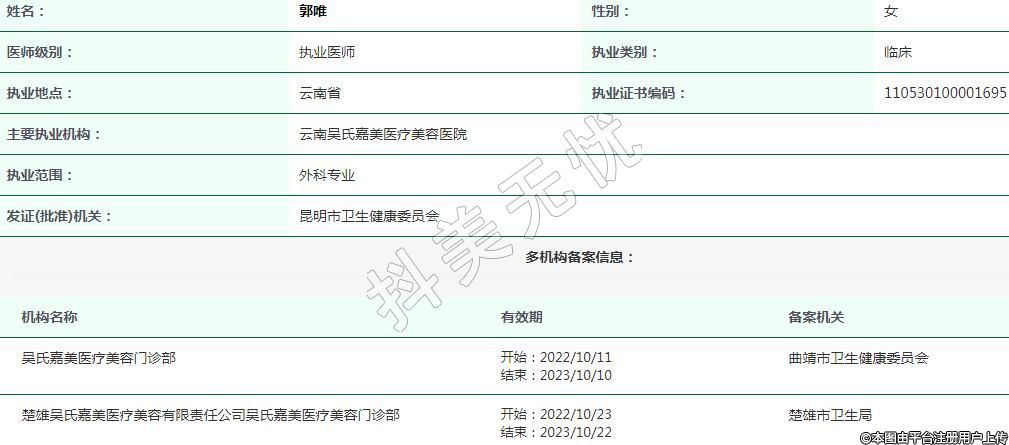 昆明吳氏嘉美執(zhí)業(yè)醫(yī)生