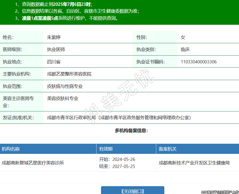 姓名:朱紫婷性別:女醫(yī)師級(jí)別:執(zhí)業(yè)醫(yī)師執(zhí)業(yè)類別:臨床執(zhí)業(yè)地點(diǎn):四川省執(zhí)業(yè)證書(shū)編碼:110330400003306主要執(zhí)業(yè)機(jī)構(gòu):成都藝星整形美容醫(yī)院執(zhí)業(yè)范圍:皮膚病與性病專業(yè)美容主診醫(yī)師專業(yè):美容皮膚科專業(yè)發(fā)證(批準(zhǔn))機(jī)關(guān):成都市青羊區(qū)行政審批局(成都市青羊區(qū)政務(wù)服務(wù)管理和網(wǎng)絡(luò)理政辦公室)多機(jī)構(gòu)備案信息: