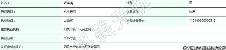 主要執(zhí)業(yè)機(jī)構(gòu):陽泉市第一人民醫(yī)院