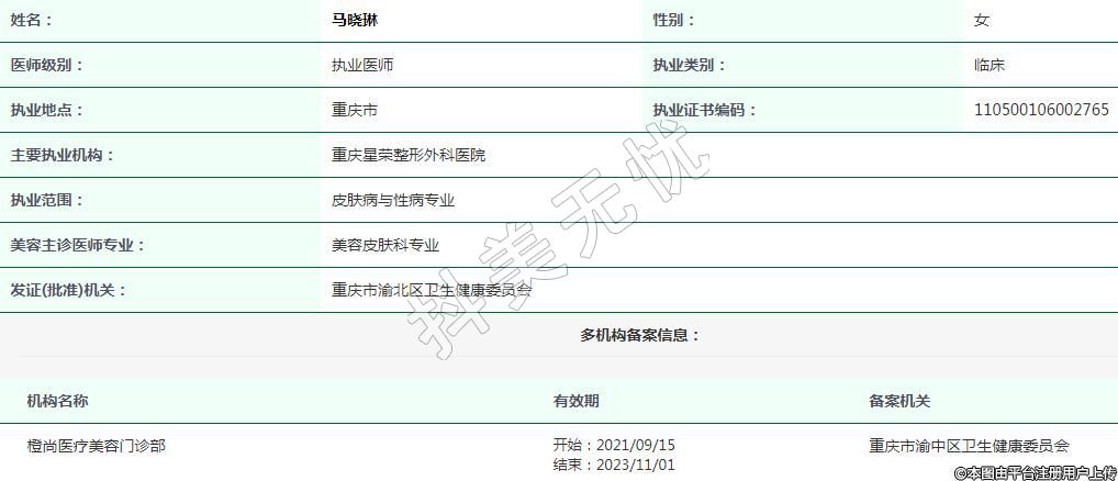 重慶橙尚醫(yī)療美容執(zhí)業(yè)醫(yī)師 -