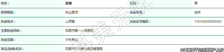 主要執(zhí)業(yè)機(jī)構(gòu):陽泉市第一人民醫(yī)院
