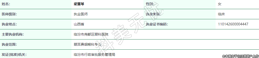 執(zhí)業(yè)范圍:眼耳鼻咽喉科專業(yè)