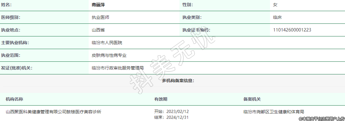 機(jī)構(gòu)名稱(chēng):山西聚醫(yī)科美健康管理有限公司鼓樓醫(yī)療美容診所