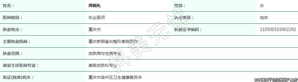 重慶新銅雀臺醫(yī)療美容執(zhí)業(yè)醫(yī)師