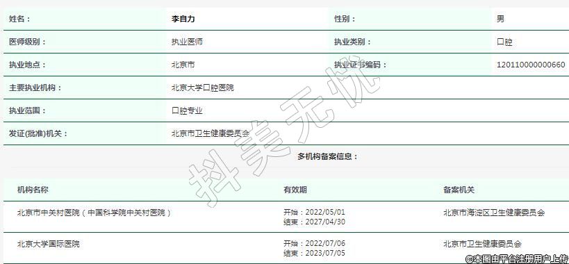 主要執(zhí)業(yè)機構:北京大學口腔醫(yī)院