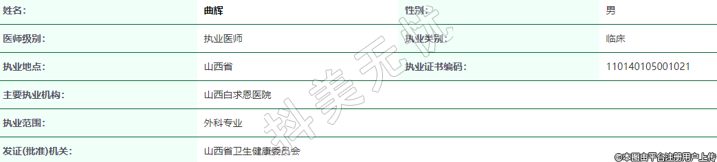 主要執(zhí)業(yè)機(jī)構(gòu):山西白求恩醫(yī)院