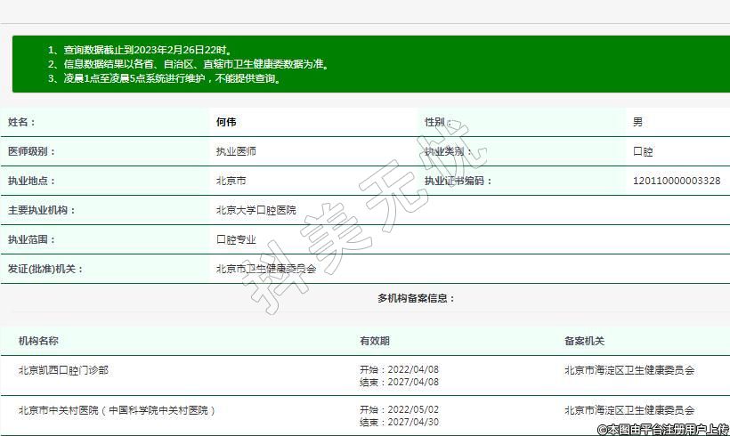 主要執(zhí)業(yè)機(jī)構(gòu):北京大學(xué)口腔醫(yī)院