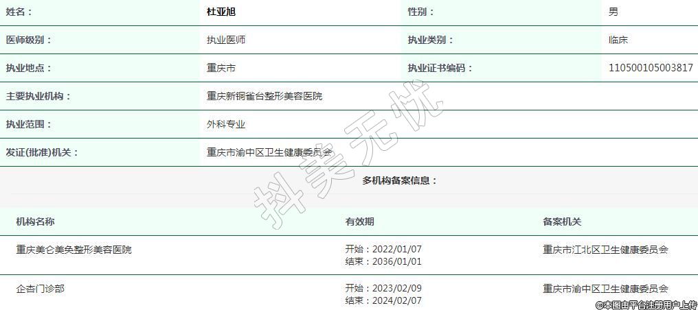 重慶新銅雀臺醫(yī)療美容執(zhí)業(yè)醫(yī)師