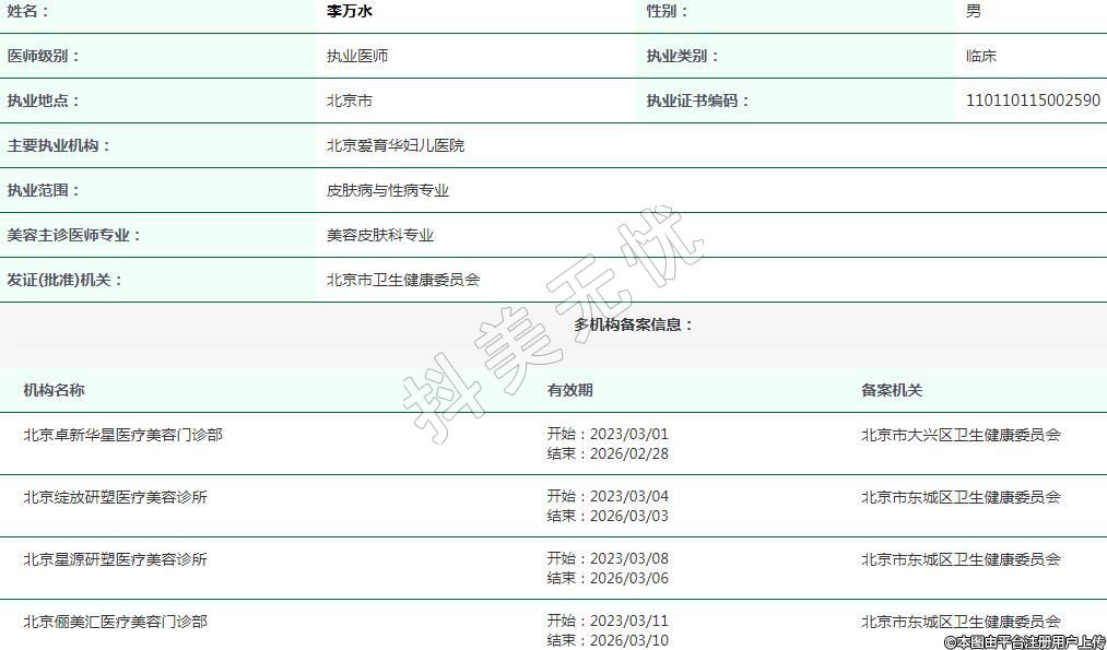北京愛育華婦兒醫(yī)院醫(yī)療美容執(zhí)業(yè)醫(yī)生