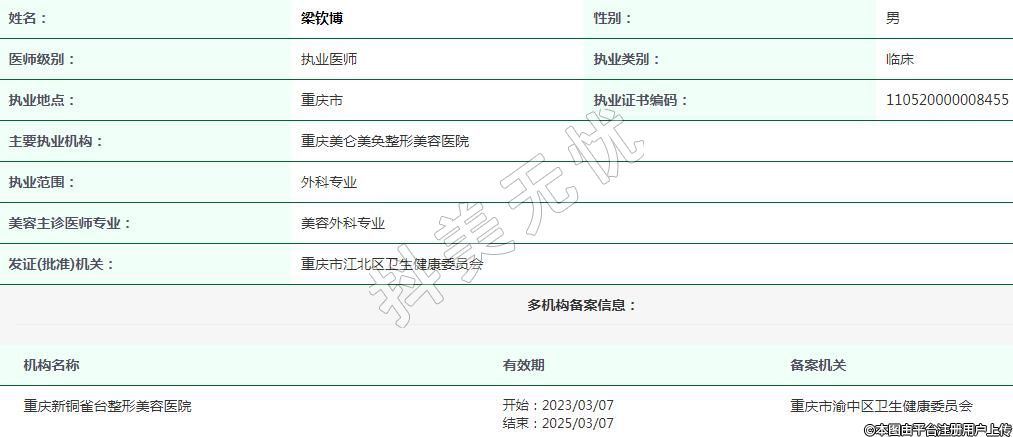 主要執(zhí)業(yè)機(jī)構(gòu):重慶美侖美奐整形美容醫(yī)院