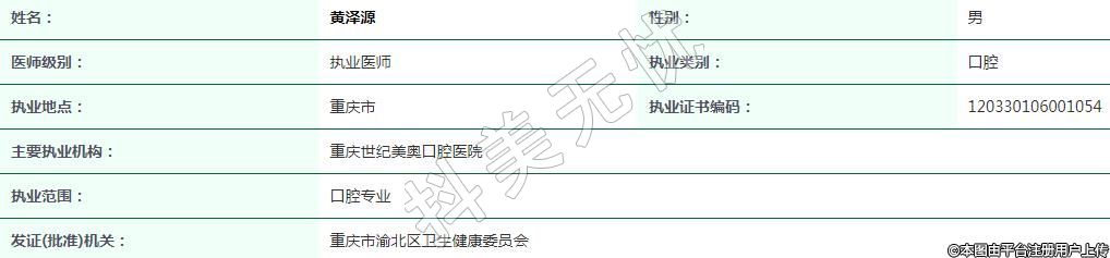 主要執(zhí)業(yè)機構(gòu):重慶世紀美奧口腔醫(yī)院