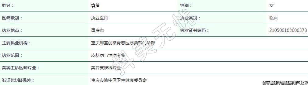 主要執(zhí)業(yè)機(jī)構(gòu):重慶鄭荃麗格青春醫(yī)療美容門診部