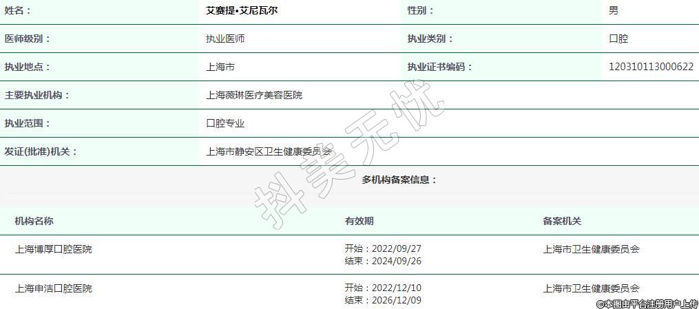 上海申潔口腔執(zhí)業(yè)醫(yī)師 -