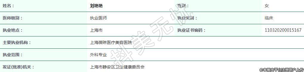 上海薇琳醫(yī)療美容執(zhí)業(yè)醫(yī)師