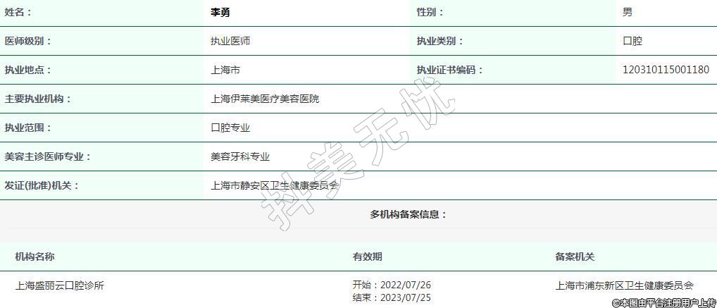上海伊萊美醫(yī)療美容執(zhí)業(yè)醫(yī)師