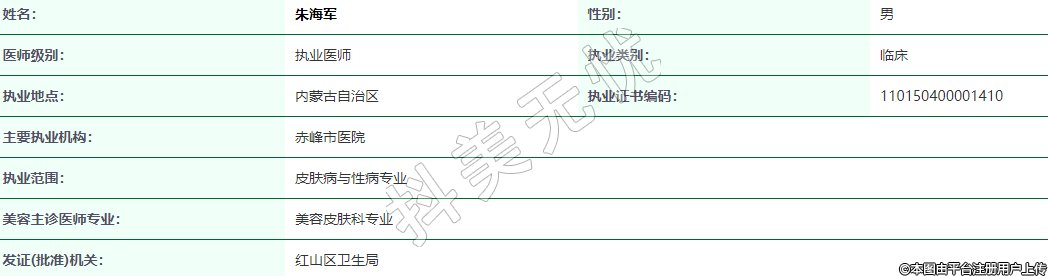 執(zhí)業(yè)范圍:皮膚病與性病專(zhuān)業(yè)