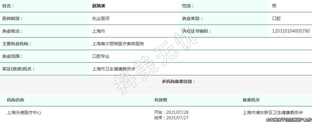 上海沃德醫(yī)療中心執(zhí)業(yè)醫(yī)師 -