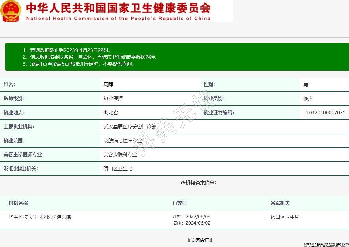 主要執(zhí)業(yè)機(jī)構(gòu):武漢星辰醫(yī)療美容門診部