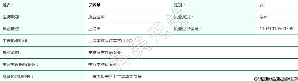 主要執(zhí)業(yè)機(jī)構(gòu):上海美萊醫(yī)療美容門(mén)診部