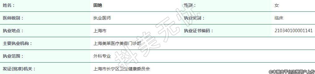 上海美萊醫(yī)療美容執(zhí)業(yè)醫(yī)師