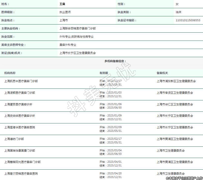 上海蛋百醫(yī)療美容執(zhí)業(yè)醫(yī)師