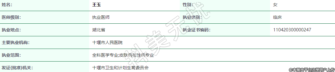 執(zhí)業(yè)范圍:全科醫(yī)學專業(yè);皮膚病與性病專業(yè)