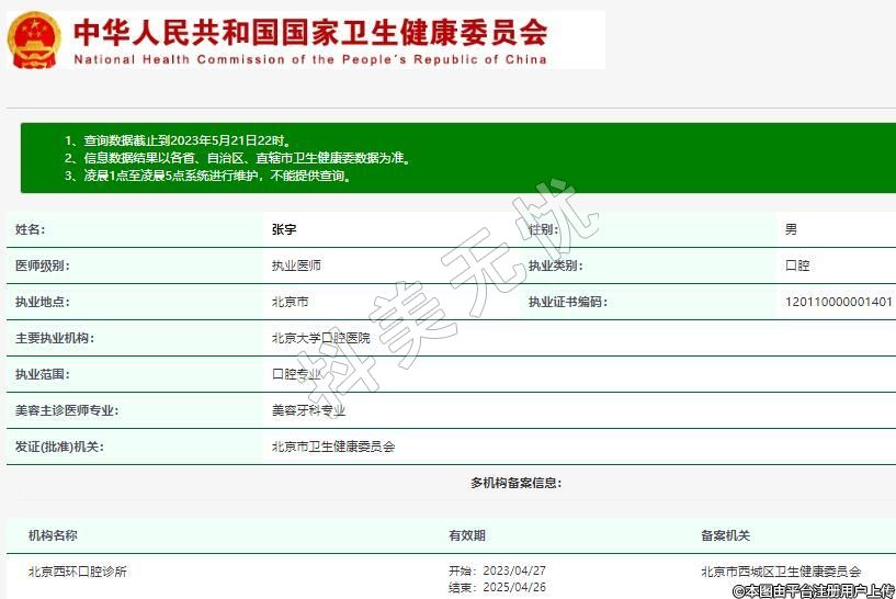 主要執(zhí)業(yè)機構(gòu):北京大學(xué)口腔醫(yī)院