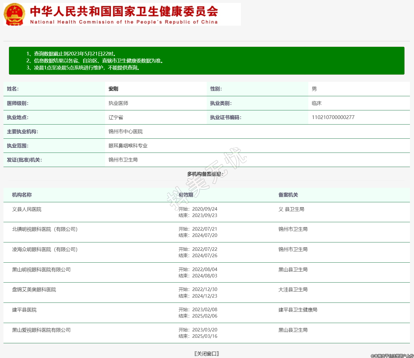 發(fā)證(批準)機關:錦州市衛(wèi)生局
