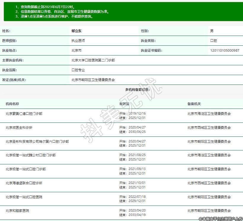 執(zhí)業(yè)范圍:口腔專業(yè)