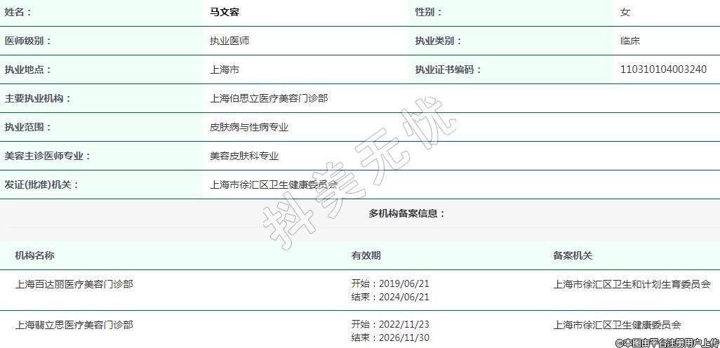 上海百達(dá)麗醫(yī)療美容執(zhí)業(yè)醫(yī)師
