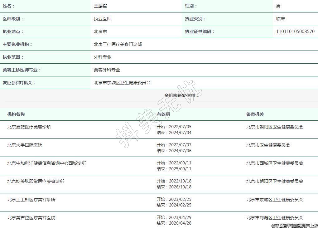 主要執(zhí)業(yè)機(jī)構(gòu):北京三仁醫(yī)療美容門(mén)診部