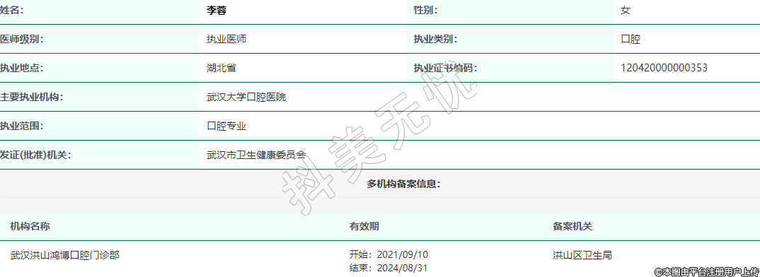主要執(zhí)業(yè)機(jī)構(gòu):武漢大學(xué)口腔醫(yī)院