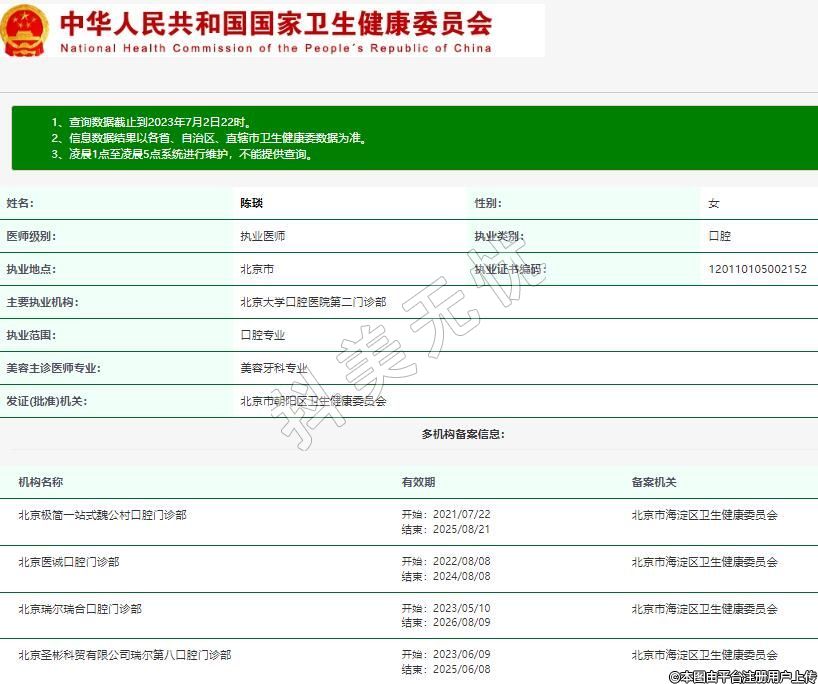 主要執(zhí)業(yè)機(jī)構(gòu):北京大學(xué)口腔醫(yī)院第二門診部