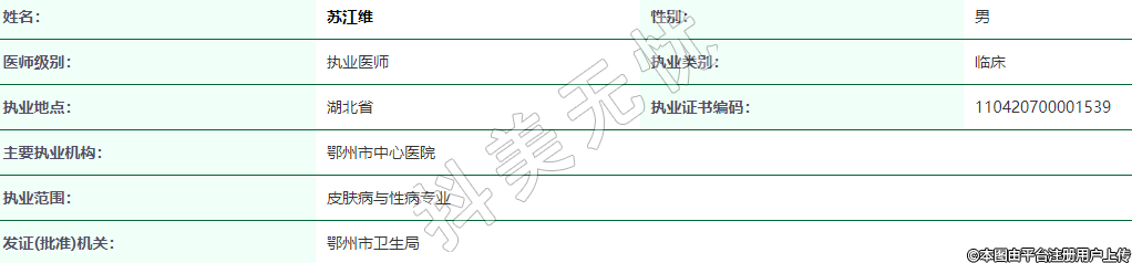 執(zhí)業(yè)范圍:皮膚病與性病專業(yè)