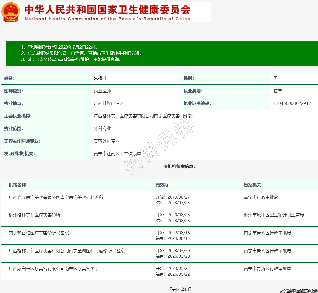 主要執(zhí)業(yè)機構(gòu):廣西格林美菲醫(yī)療美容有限公司南寧醫(yī)療美容門診部