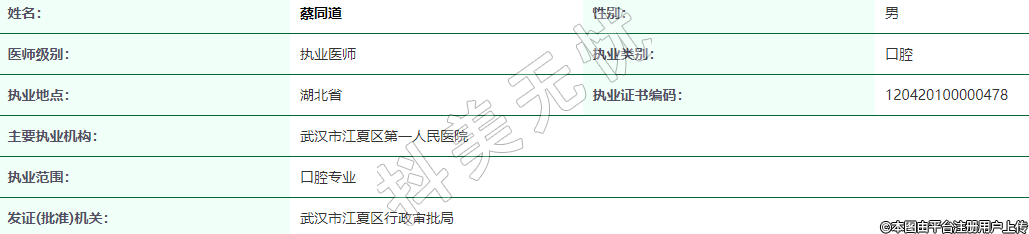 執(zhí)業(yè)證書(shū)編碼:120420100000478