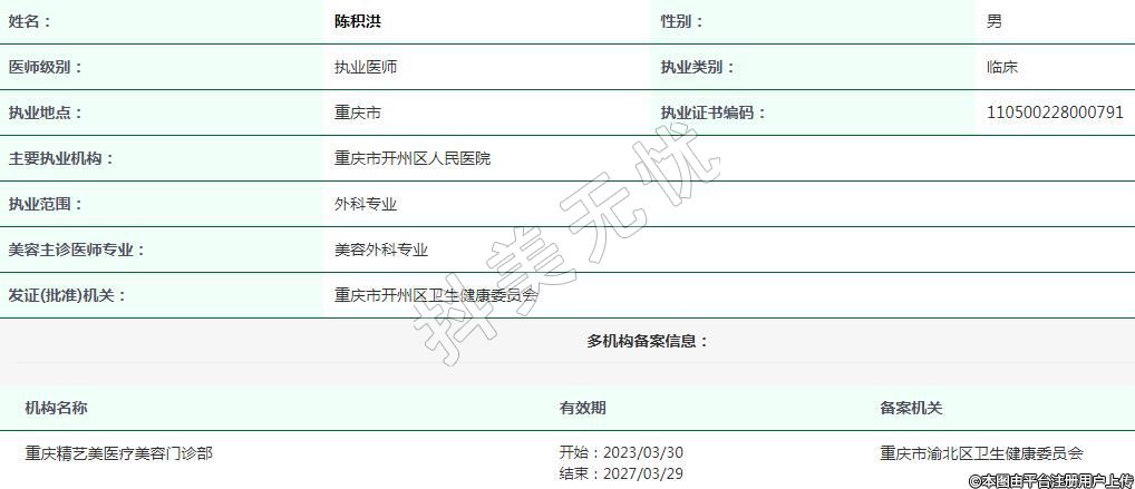 重慶精藝美醫(yī)療美容執(zhí)業(yè)醫(yī)師 -