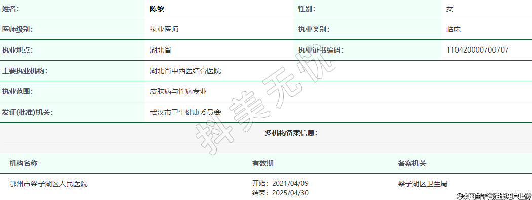 執(zhí)業(yè)范圍:皮膚病與性病專業(yè)