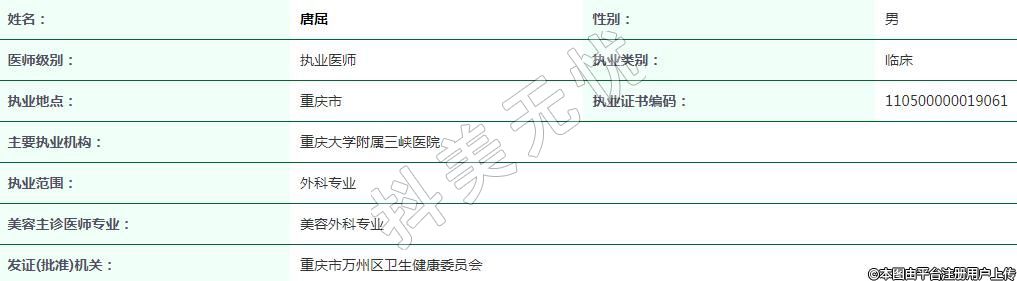 重慶大學(xué)附屬三峽醫(yī)院醫(yī)療美容執(zhí)業(yè)醫(yī)師