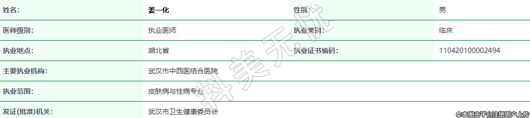 執(zhí)業(yè)范圍:皮膚病與性病專業(yè)