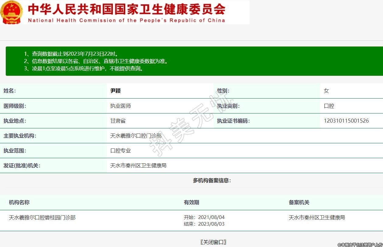 主要執(zhí)業(yè)機構:天水羲雅爾口腔門診部