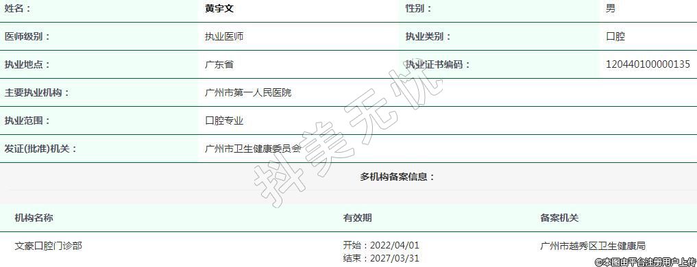 執(zhí)業(yè)范圍:口腔專(zhuān)業(yè)
