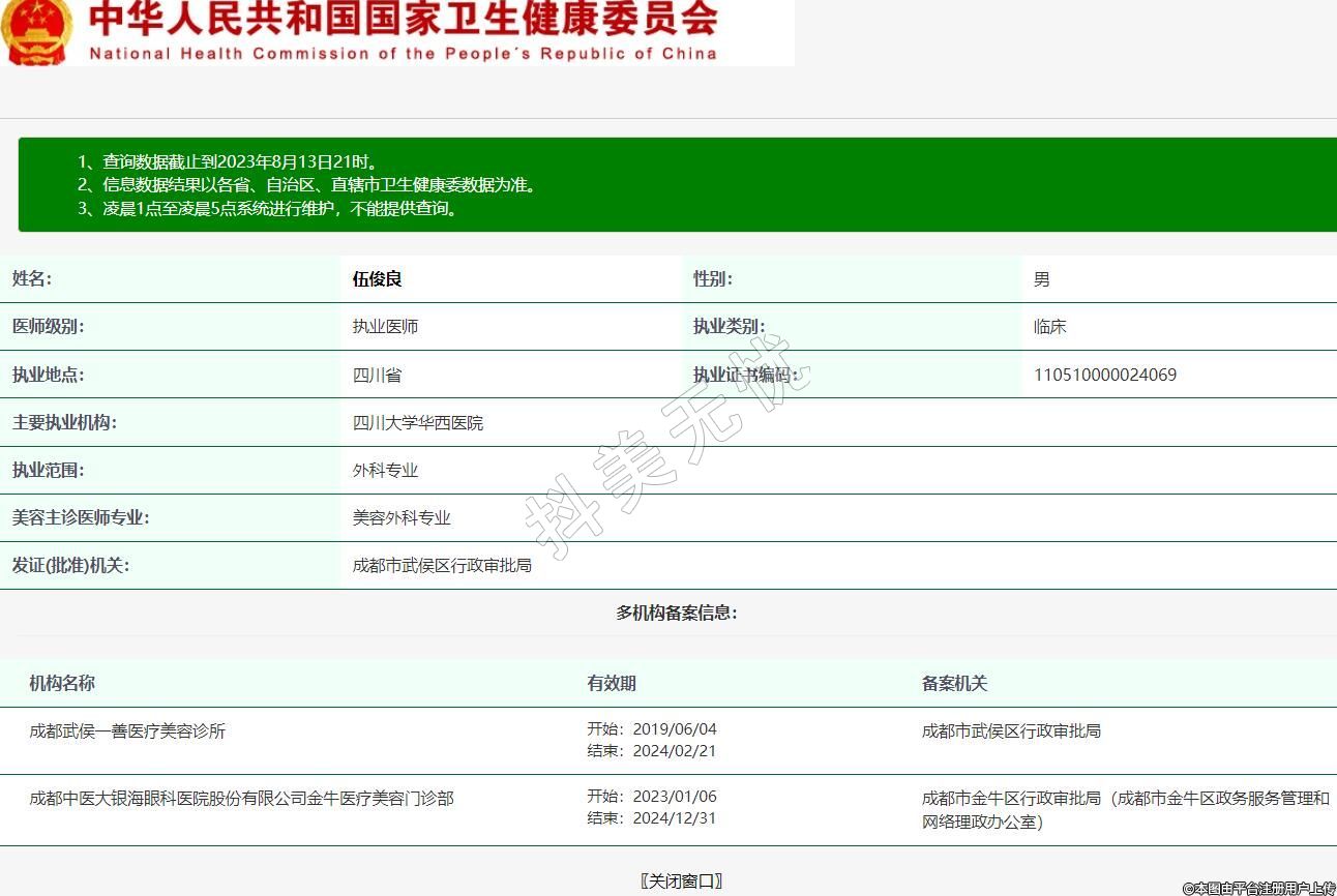 機構名稱:成都中醫(yī)大銀海眼科醫(yī)院股份有限公司金牛醫(yī)療美容門診部