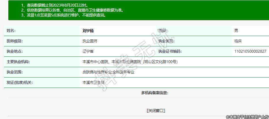 執(zhí)業(yè)范圍:皮膚病與性病專業(yè);全科醫(yī)學(xué)專業(yè)