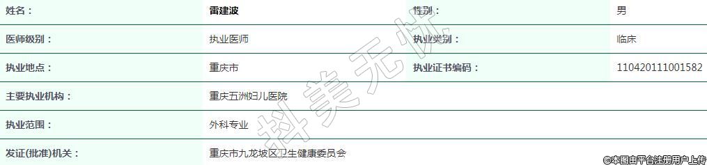 重慶五洲婦兒醫(yī)院執(zhí)業(yè)醫(yī)師