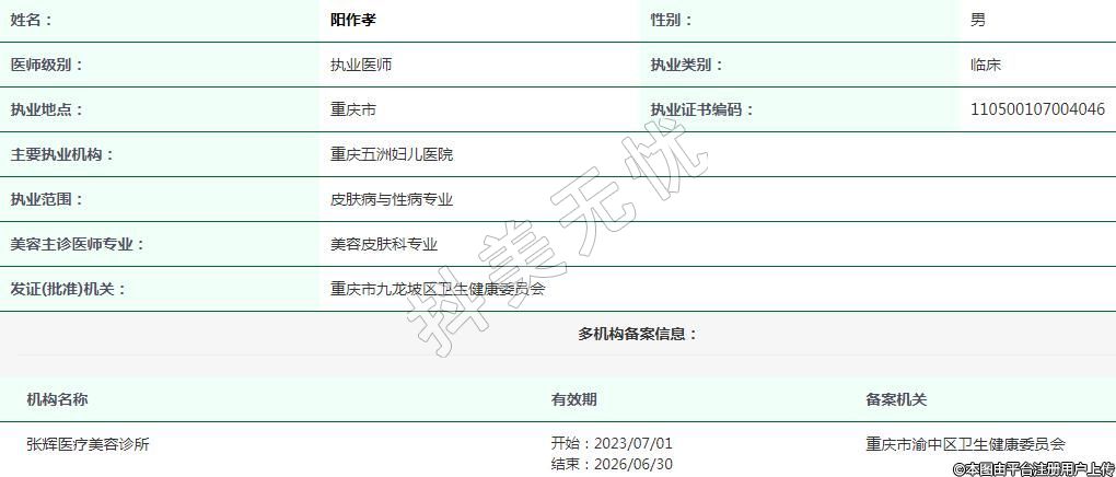 重慶五洲婦兒醫(yī)院執(zhí)業(yè)醫(yī)師
