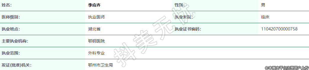 執(zhí)業(yè)地點:湖北省